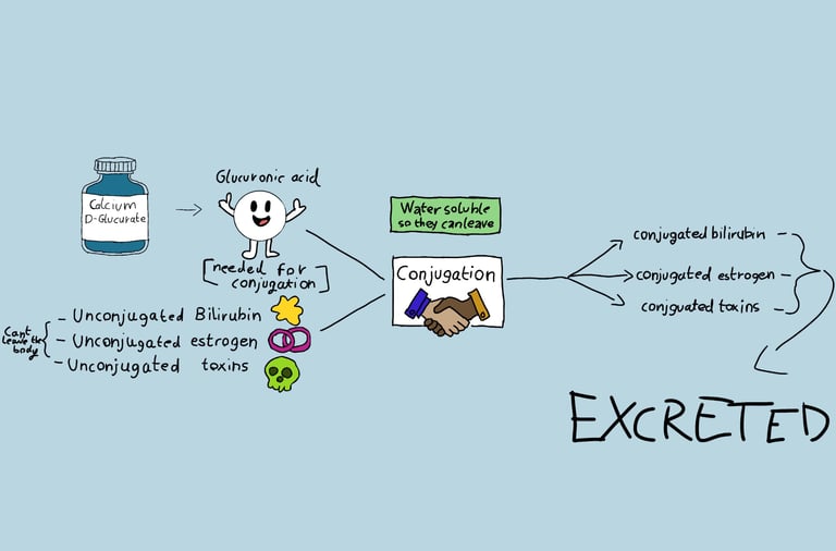 By both protecting existing conjugates and supplying the raw material for new glucuronidation, Calcium D-Glucarate helps ensure bilirubin, hormones, and toxins stay properly conjugated and are efficiently eliminated, supporting your body’s natural detoxification processe