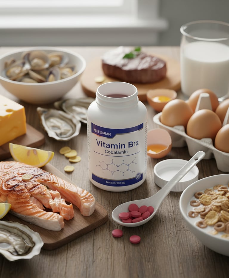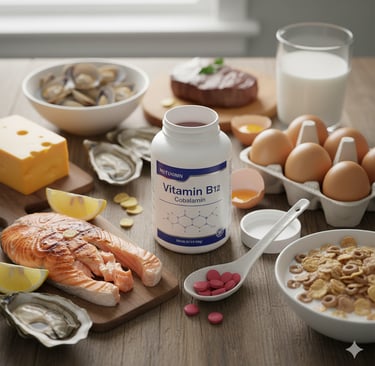 Witaminę B12 otrzymujesz głównie z pokarmów pochodzenia zwierzęcego, takich jak mięso, ryby, nabiał i jaja. Dla osób z Zespołem Gilberta (ZG) utrzymanie zdrowych poziomów B12 może wspierać funkcję wątroby i pomagać w zarządzaniu poziomami bilirubiny, nastrojem i energią.